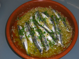 800 g de antxoas, Un diente de ajo, Guindilla de Cayena, Una cebolla mediana, Aceite de oliva, Sidra o vino blanco, Vinagre Y Perejil